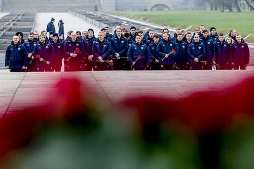 11.11.2025 Россия, Санкт-Петербург, Пискарёвское мемориальное кладбище. Посещение Пискарёвского мемориального кладбища национальной сборной России по футболу.
