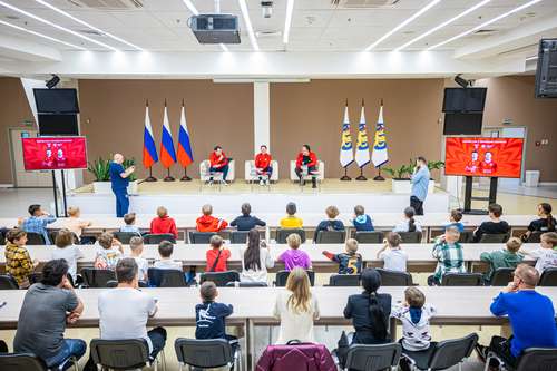 14.11.2025 Россия, Сочи, Образовательный центр «Сириус». Встреча главного тренера национальной сборной России по футболу Валерия Карпина со школьниками.